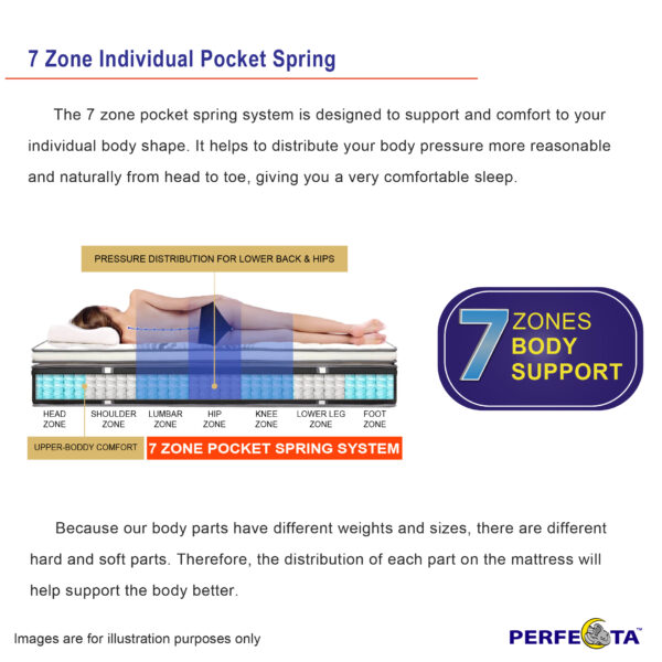 The mattress features an individually pocket spring system that provides a more customized and individualized support for each sleeper. This system ensures that each person can enjoy a comfortable and supportive sleeping experience, regardless of their body type or sleeping position. The 7 Zone design of the mattress ensures that the mattress is evenly distributed, providing support to the entire body