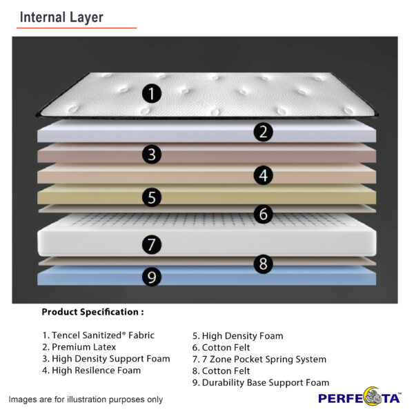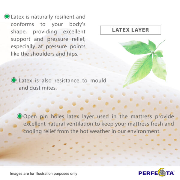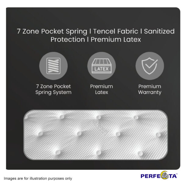 The mattress has a 7 zone pocket spring system that provides support to different parts of the body, reducing pressure points and promoting better sleep quality. The latex top layer of the mattress is also included, which is known for its durability, elasticity, and natural resistance to bacteria and mold growth. This makes it a hygienic and long-lasting option for a mattress.