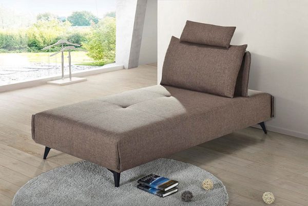 The Basil Daybed, upholstered in a material fabric, is a small multifunctional sofa sleeper perfect for living areas, home offices, and guest bedrooms. It features a thick foam layer with z-spring and the unique l-shape legs are sure to make a statement in any contemporary living space.